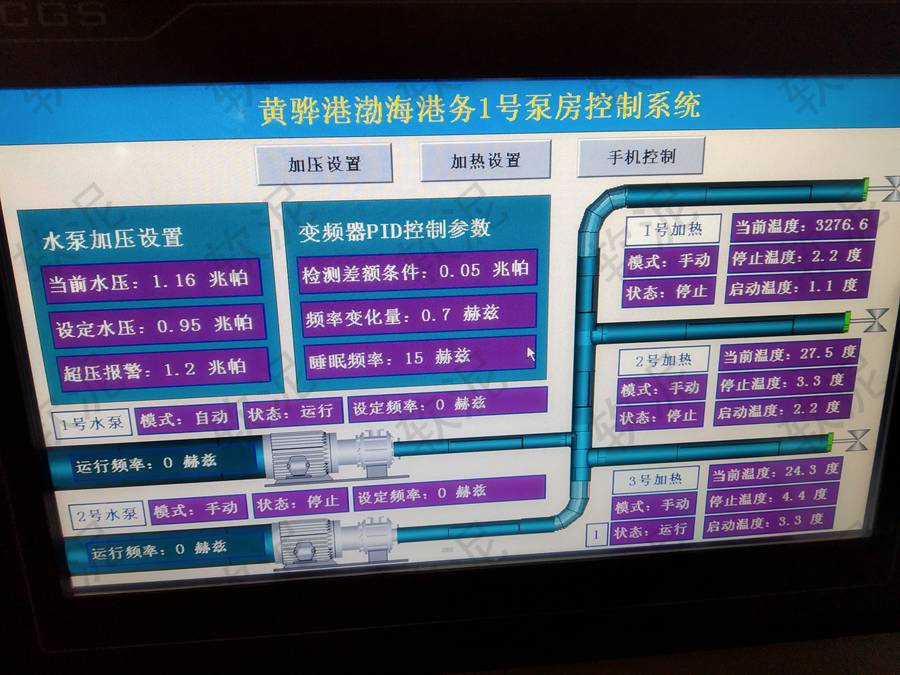 | 項(xiàng)目位于河北省滄州市黃驊港口。由原來(lái)的灑水車除塵方式改為了固定管道供水,高壓高空噴淋設(shè)備自動(dòng)噴灑的方式,實(shí)現(xiàn)作業(yè)期間自動(dòng)除塵功能。變頻器根據(jù)水壓傳感器反饋情況來(lái)決定水泵運(yùn)轉(zhuǎn)頻率,維持運(yùn)行期間的管道壓力在預(yù)設(shè)的范圍內(nèi)。使用軟泥智能控制主機(jī)的4G聯(lián)網(wǎng)控制功能,管理人員通過(guò)手機(jī)即可遠(yuǎn)程查看設(shè)備運(yùn)行狀態(tài),遠(yuǎn)程開關(guān)機(jī)和設(shè)置目標(biāo)水壓。 |
